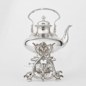1022. Grande bouilloire bombée sur piètement de rinceaux