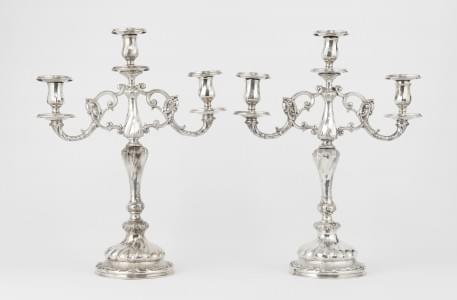 1037. Suite de trois candélabres à trois feux de style George III