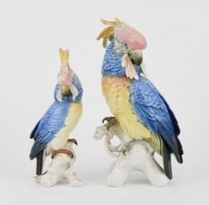 Allemagne, XIXe s, porcelaine, verre et argent, H 13 et 12 cm