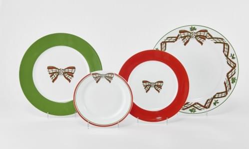 1076. Service à dîner à motif rouge et vert de ruban écossais noué