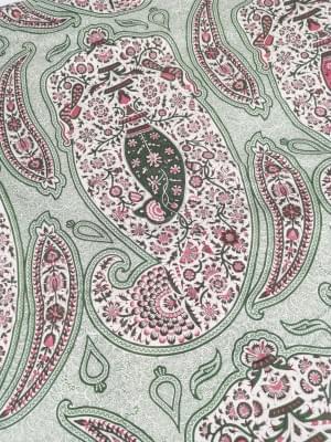 Tissu à motif floraux vert sur fond turquoise, 270x150 cm
