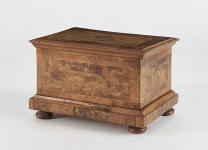 Bois de placage à décor marqueté, bronze doré, 76x68x48 cm