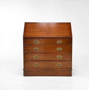 Quatre tiroirs et un abattant, bois marqueté et bronze doré, 142...