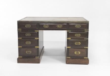 Acajou, laiton et cuir fauve doré au petit fer, 73x117x66 cm