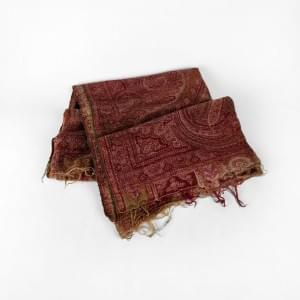 3984. Châle à motif cachemire sur fond rouge et bordure verte