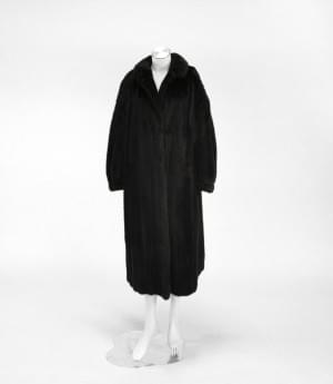 Fourrure de vison brun, poches latérales, fermetures à crochet,...