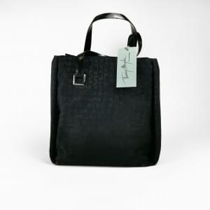 Tissu noir monogrammé, intérieur en tissu violet, fermeture aima...