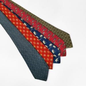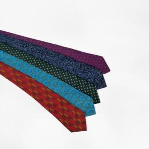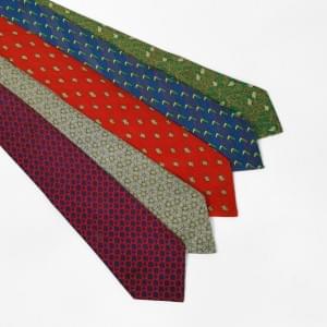 Soie à motifs géométriques, H, chouettes et moulins, L 145 à 155...