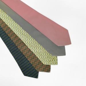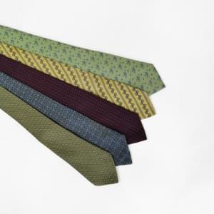 Trois à motifs géométriques, et deux unies à fond rose et à fond...