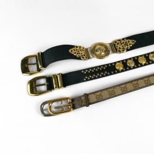 Cuir noir, motifs en métal doré et strass, L 90 cm. On joint une...