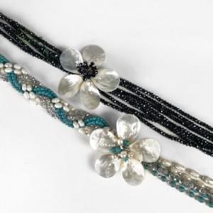 L'un multi-rangs de perles blanches et l'autre couleur lavande,...