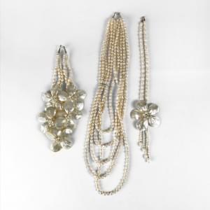 4123. Collier cravate composé de perles de nacre, de perles blanches e...
