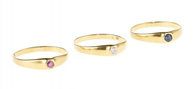 4117. Lot de trois bagues serties l'une d'une pierre d'imitation pour...
