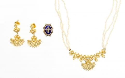 Un collier, un bracelet et des pendants d'oreilles émaillés sert...