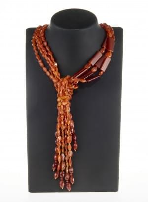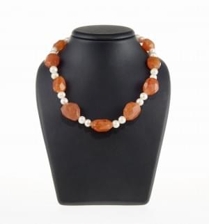 4128. Collier tour de cou de perles de cornaline facettées alternées d...