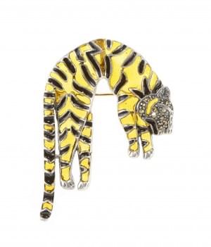 4131. 6688 -*Broche-pendentif émaillée à motif de panthère sertie de m...
