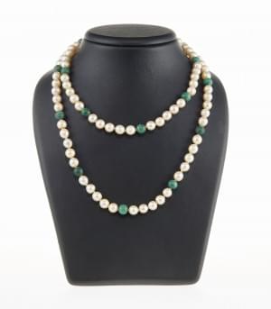 4138. Sautoir de perles (D env. 7,5 mm) ponctué de perles de malachite