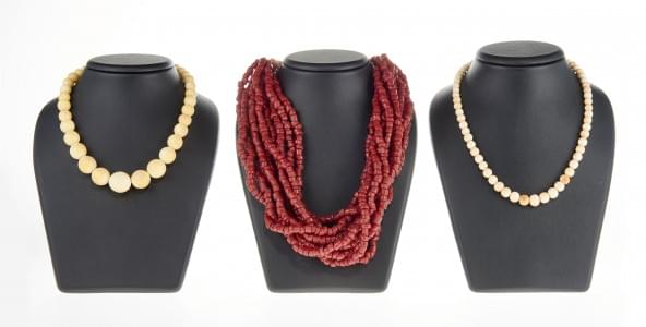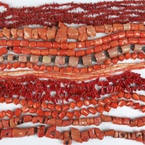 4114. Collier multi-rangs de perles de corail rouge et rose