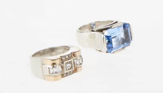 L'une signée Misis et sertie de pierres d'imitation, l'autre sig...