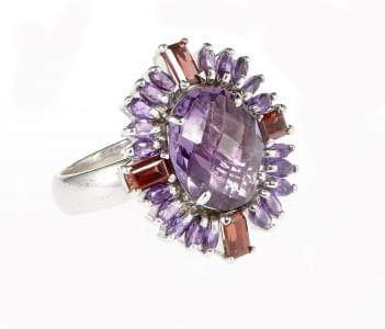 4191. 7201 -*Bague à motif de fleur pavée d'améthystes taille ovale, p...