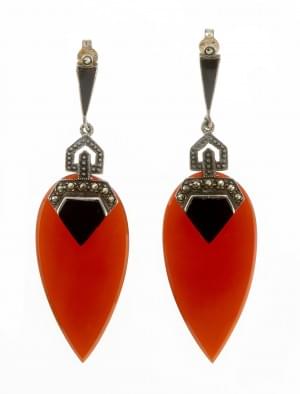 4170. Boucles d'oreilles Art déco composées de cornaline et d'onyx reh...