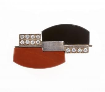 4171. Broche Art déco sertie de pierres d'imitation pour le diamant, s...