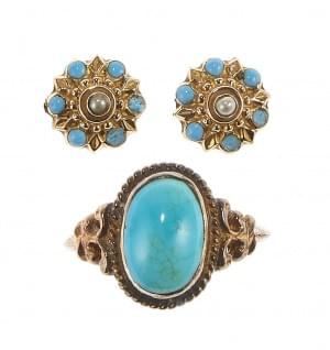 4175. Lot d'une bague sertie d'une turquoise taille cabochon et de clo...