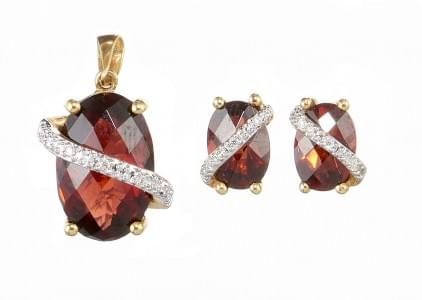 4177. Lot d'un pendentif et de clous d'oreilles sertis de grenats tail...
