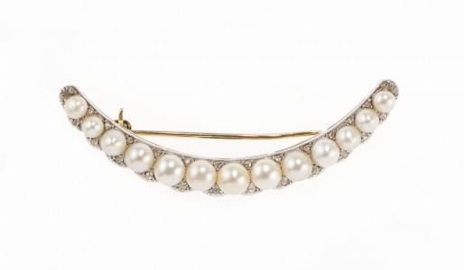 4178. Broche croissant sertie de demi-perles rehaussées de roses de di...
