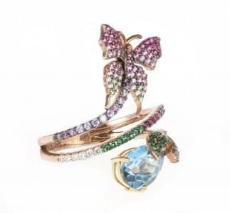 4181. 6616*Bague ajourée à motif de papillon retenant une topaze bleue...