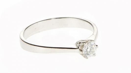 Or gris 750, doigt 53-13, 3 g, solitaire avec un certificat du J...