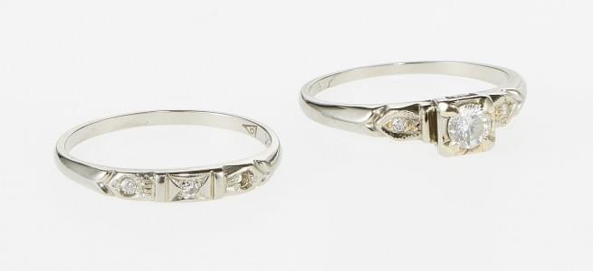 4196. Lot d'une bague solitaire sertie d'un diamant (env. 0,2 ct) et d...