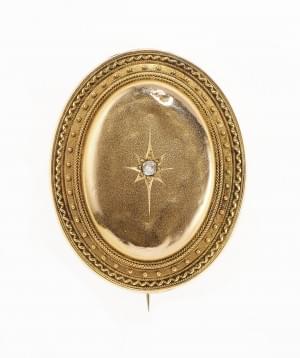 4197. Broche ovale porte-photo centrée d'un petit diamant taille ancie...