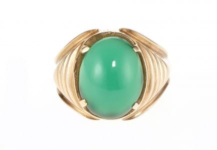 4198. Bague sertie d'une agate verte taille cabochon ovale (env. 6 ct)
