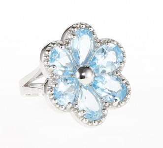 4200. 7268 -*Bague fleur sertie de topazes bleues taille poire (env. 9...