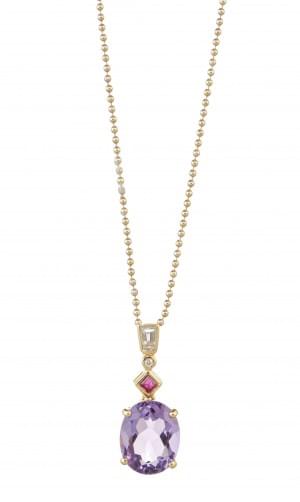 Centrée d'une améthyste taille ovale facettée entourée d'améthys...