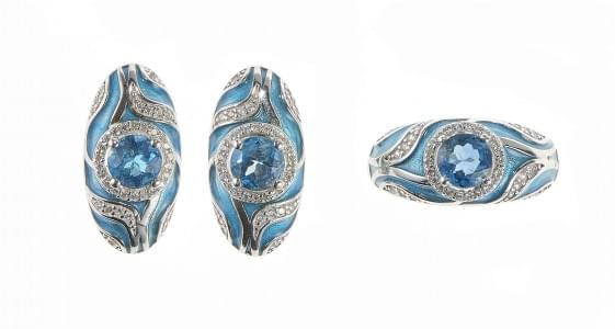 4204. 7250 -*Ensemble d'une bague et de boucles d'oreilles émaillées