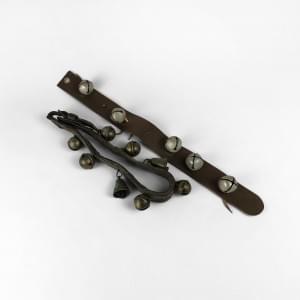 Acier et garniture en cuir grainé brun, H 4 et 11 cm
