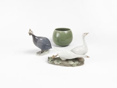 4435. Vase, groupe de deux oies et dindon