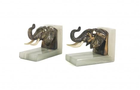 4440. Paire de serres-livres en forme de têtes d'éléphants
