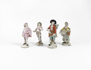 Samson et Capodimonte, quatre figurines, porcelaine polychrome,...
