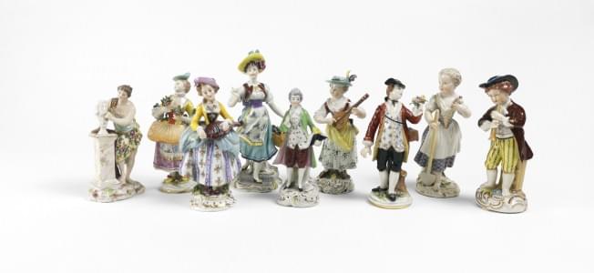 9 figurines, porcelaine polych...