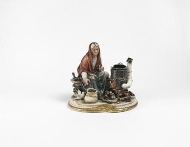 4461. Femme préparant les châtaignes et homme se rasant