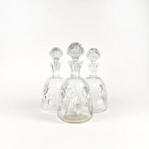 Verre moulé, comprenant: 1 vase, 2 flacons et 1 boîte, H 6 à 15...