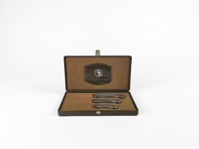 4474. FICHE Set de 3 couteaux à manches à décor d'animaux de chasse