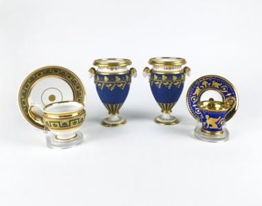 4483. Paire de vases et deux tasses à décor néoclassique