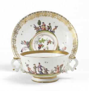 4486. Tasse à anses et sous-tasse à motif au chinois