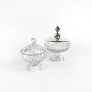 L'une signée Baccarat, cristal et métal argenté, H 17 et 22 cm....