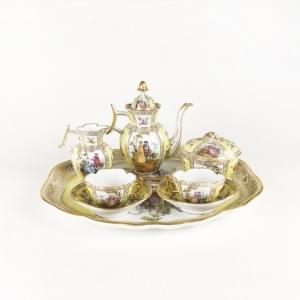 4490. Tête à tête à décor jaune et or et scènes galantes en réserve