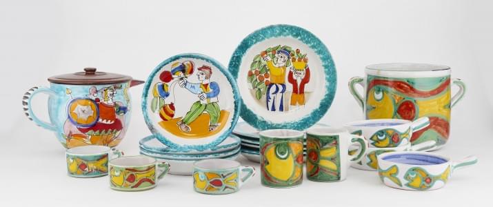 Ensemble de céramiques émaillées polychromes, comprenant: 6 assi...